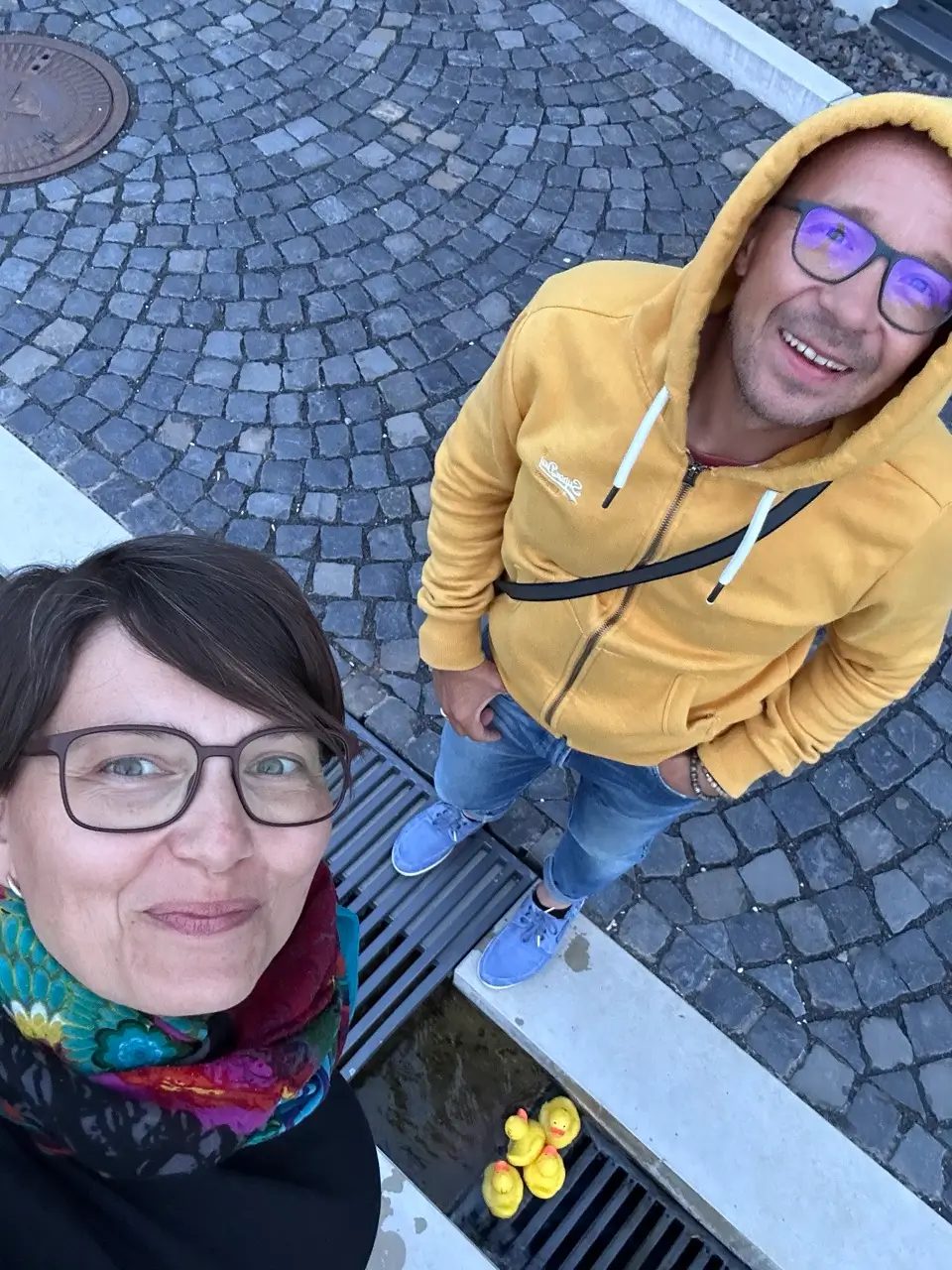 Bei unserer allerletzten Unterkunft in Alsfeld haben wir ein Bade-Enten-Wettrennen veranstaltet.